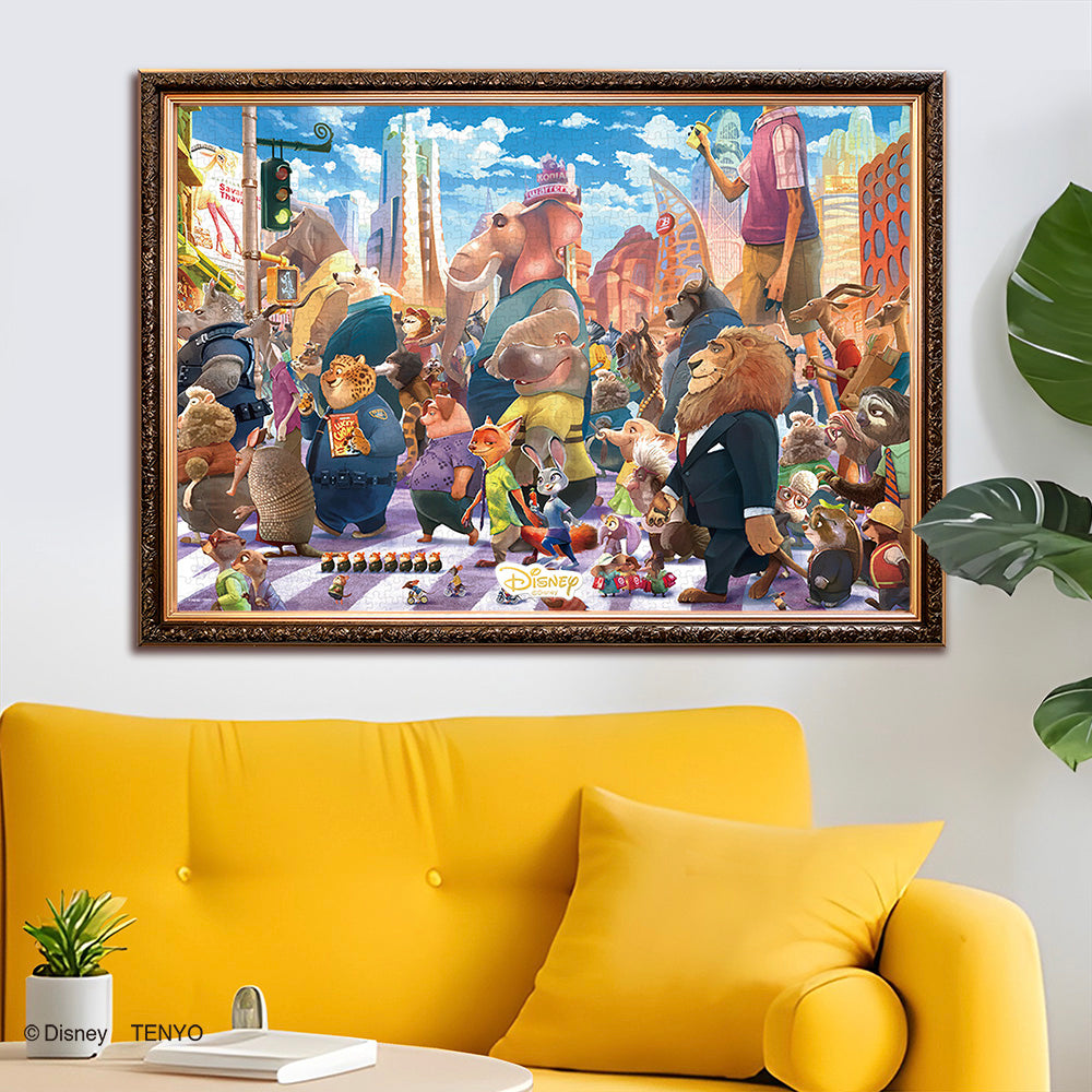 ズートピアに暮らす、小さな「トガリネズミ」から大きな「ゾウ」や「キリン」まで、多様な動物たち60体以上が描かれています!あなたは全部わかりますか!?パズル完成後は、別売の専用パネルに入れて飾れば、お部屋を彩るステキなインテリアに!