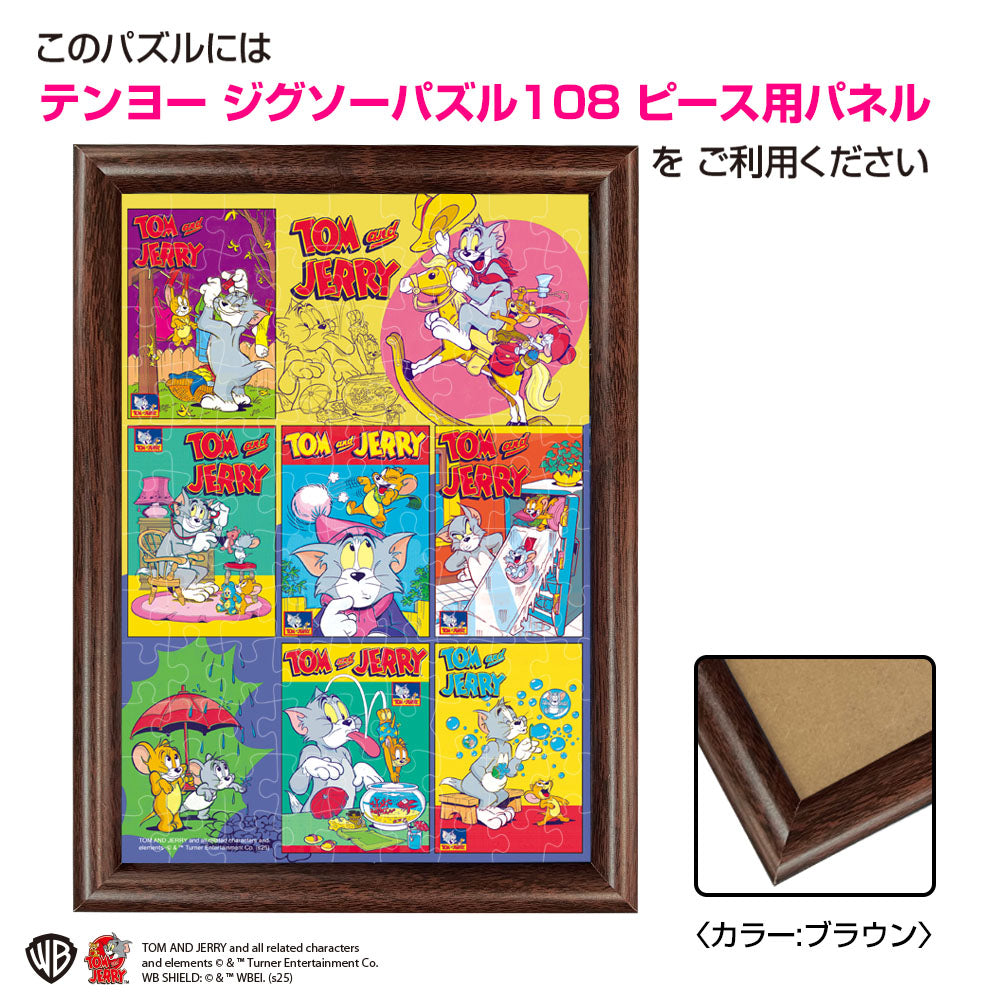 名作として、世代を超え世界中の人々から愛され続けている「トムとジェリー」。トムジェリらしさ満点のポスターを集めた絵柄のジグソーパズルが新登場!パズル完成後、別売のパネルに入れて飾れば、お部屋を彩るステキなインテリアに!適合パネル:「テンヨー ジグソーパズル 108ピース用パネル(ブラウン)」