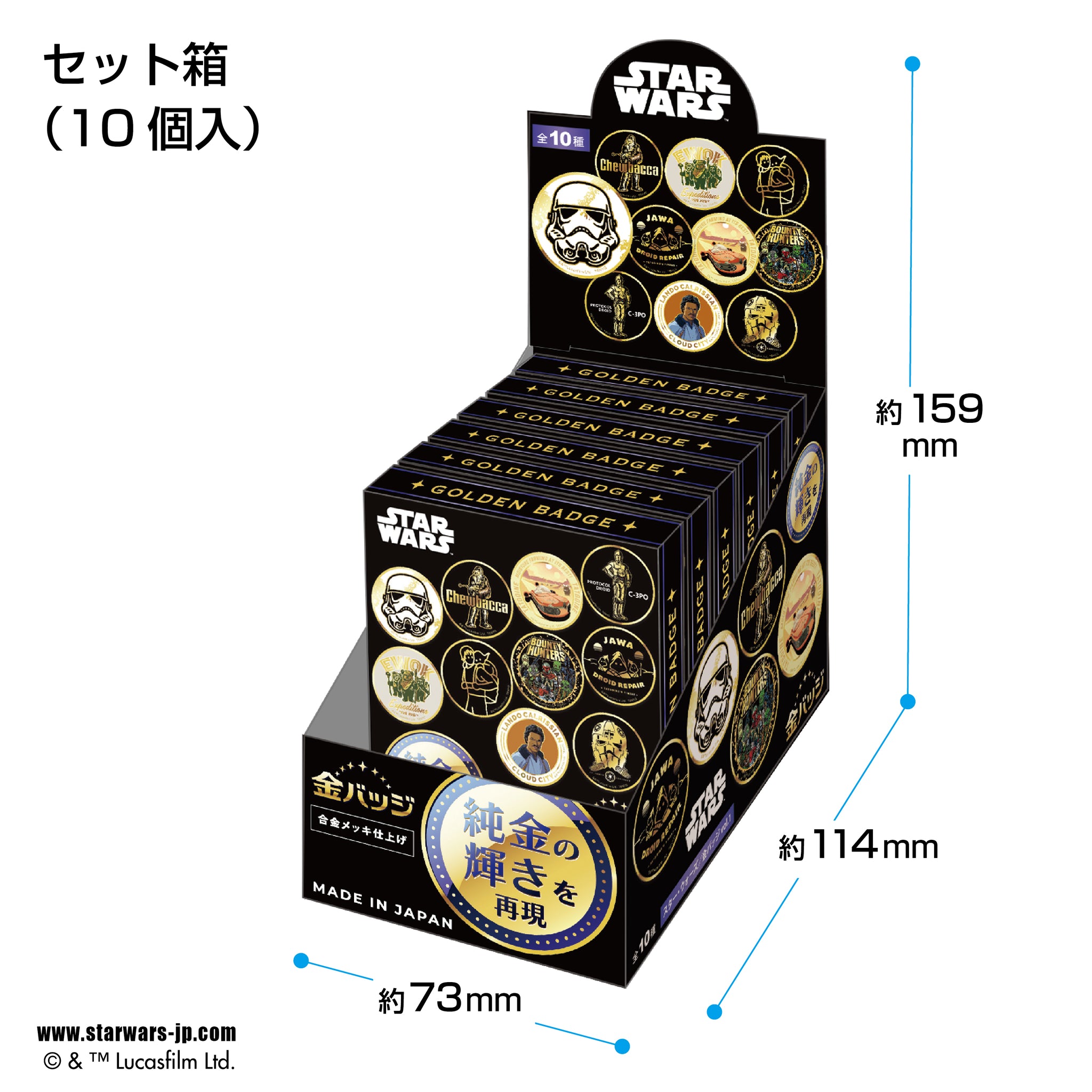 全10種類のうち、いずれか1種類がランダムに入っています。※セット箱には10個入っています。・バッジサイズ:直径約55mm・素材:ステンレス、ブリキ・日本製